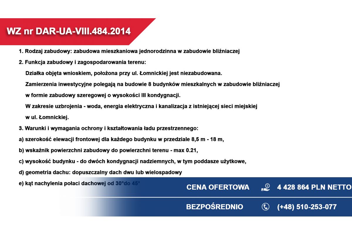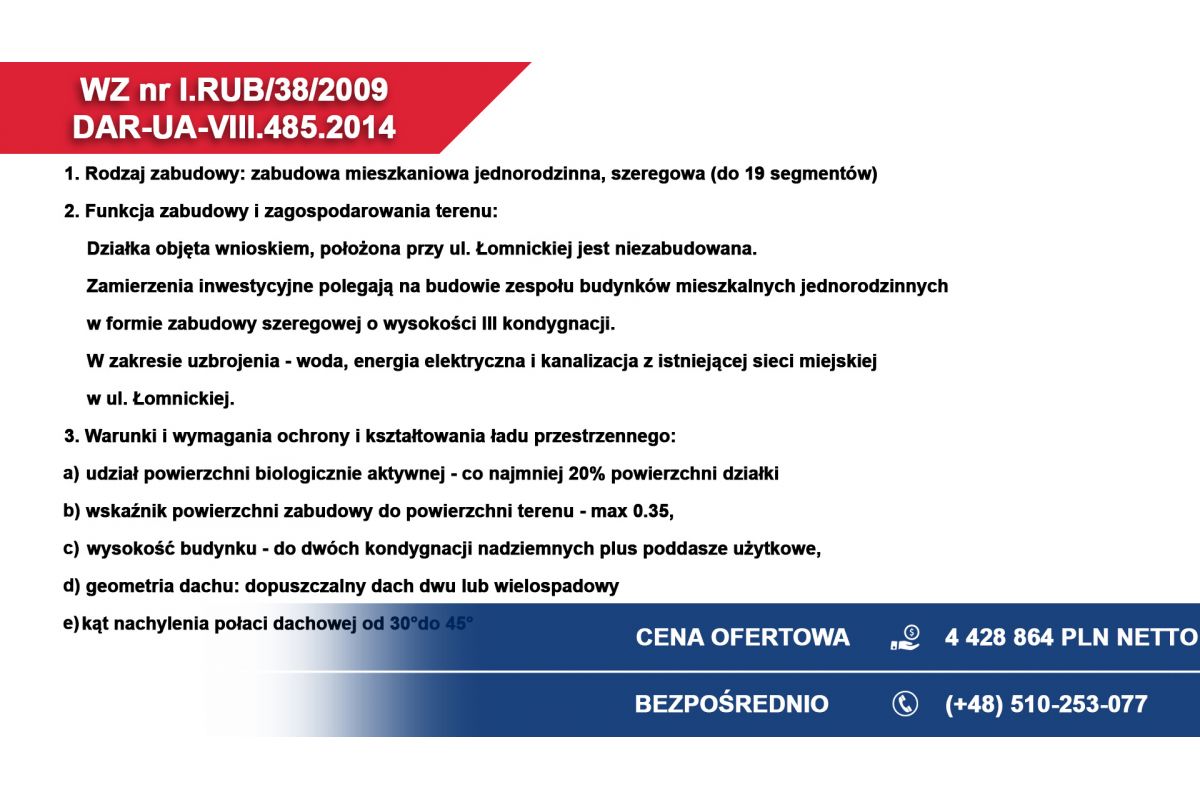 WZ na 19 segmentów lub 8 bliźniaków | Łódź, ul. Łomnicka 21 | TOP lokalizacja!